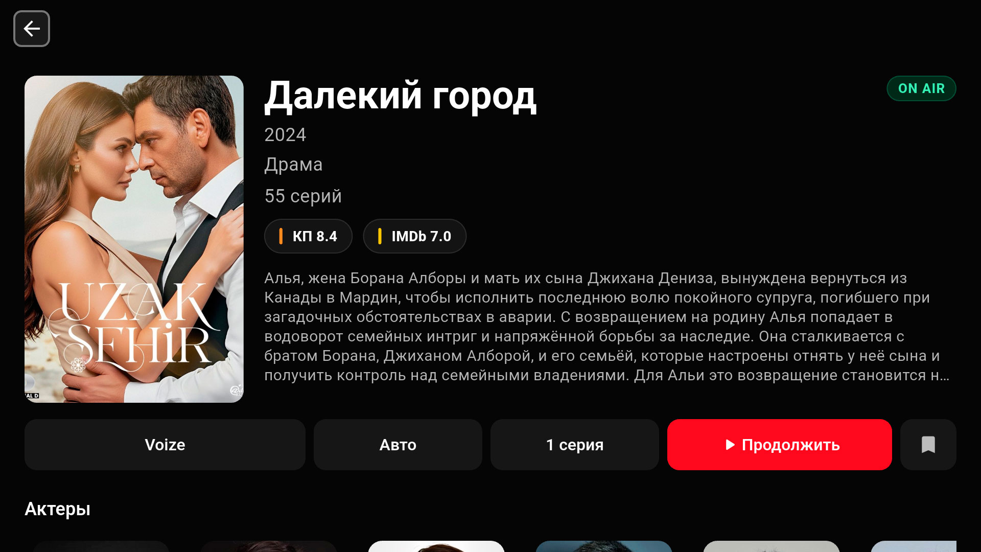 Онлайн-кинотеатр содержит большую коллекцию сериалов производства Турции. Для удобства зрителя есть разделы с историей, закладками и уведомления о выходе новых серий.