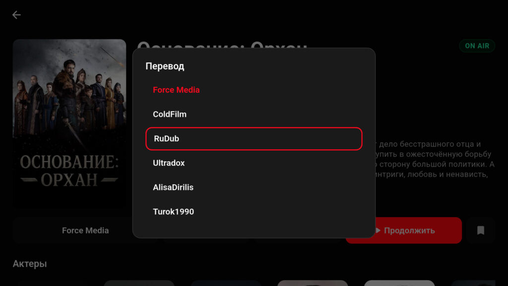 Для онлайн-просмотра в кинотеатре TuDiziPlay можно использовать внешний плеер (или внутренний на базе ExoPlayer). Также в настройках можно выбрать резервный сервер (полезно при блокировках) и скрыть озвучки на других языках или переводы с субтитрами.