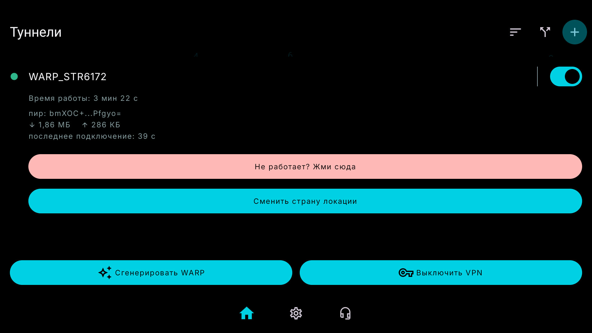 Настройка весьма простая, достаточно на главной странице сгенерировать WARP и включить его. В настройках WARP можно сменить страну локации, выбрать протокол DNS или использовать встроенные варианты конфигурации.